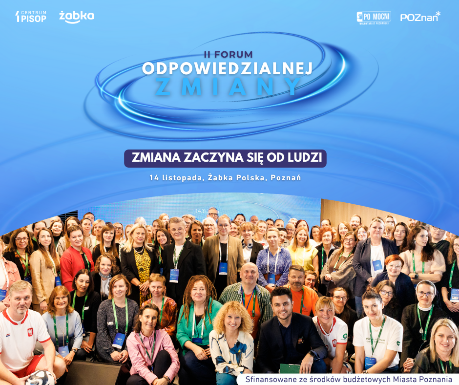 Zapraszamy Cię już 14 listopada, do Poznania, na drugą edycję Forum Odpowiedzialnej Zmiany – spotkanie osób, które w praktyce wdrażają działania z zakresu odpowiedzialnego biznesu, HR, wolontariatu i współpracy z organizacjami społecznymi. Forum organizuje Stowarzyszenie Centrum PISOP, Grupa Żabka oraz Miasto Poznań.