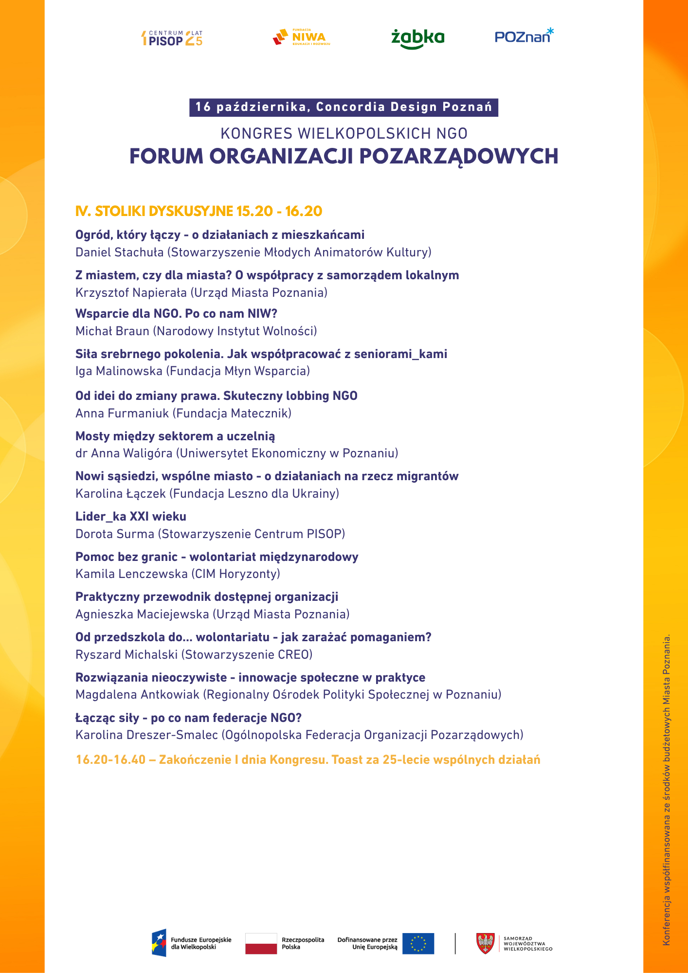 16 i 17 października Poznań zamieni się w centrum spotkań trzeciego sektora. Czekają na Was dwie dawki inspiracji, wiedzy i dobrej energii – w towarzystwie przedstawicieli i przedstawicielek organizacji pozarządowych, samorządów, instytucji publicznych i biznesu.