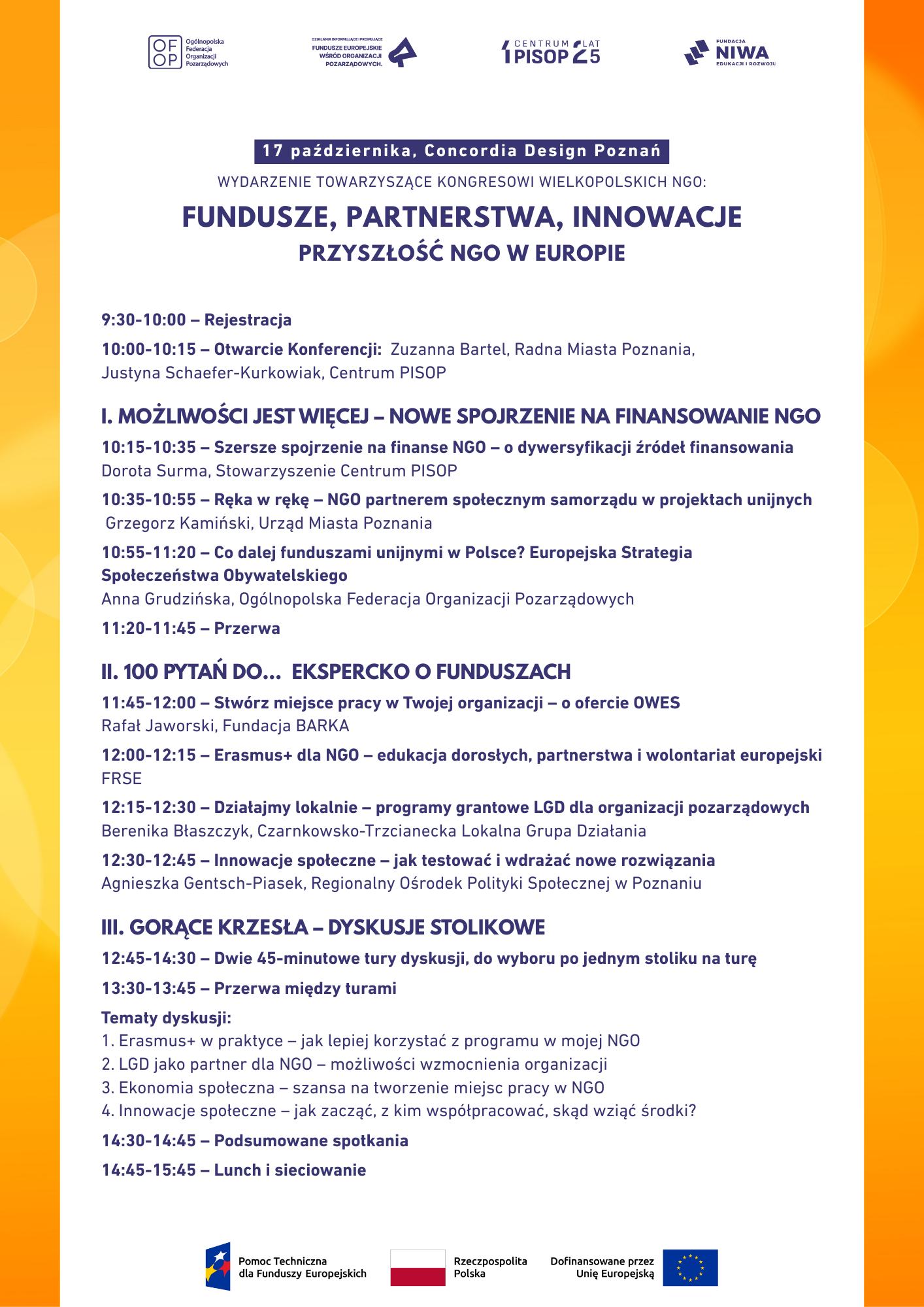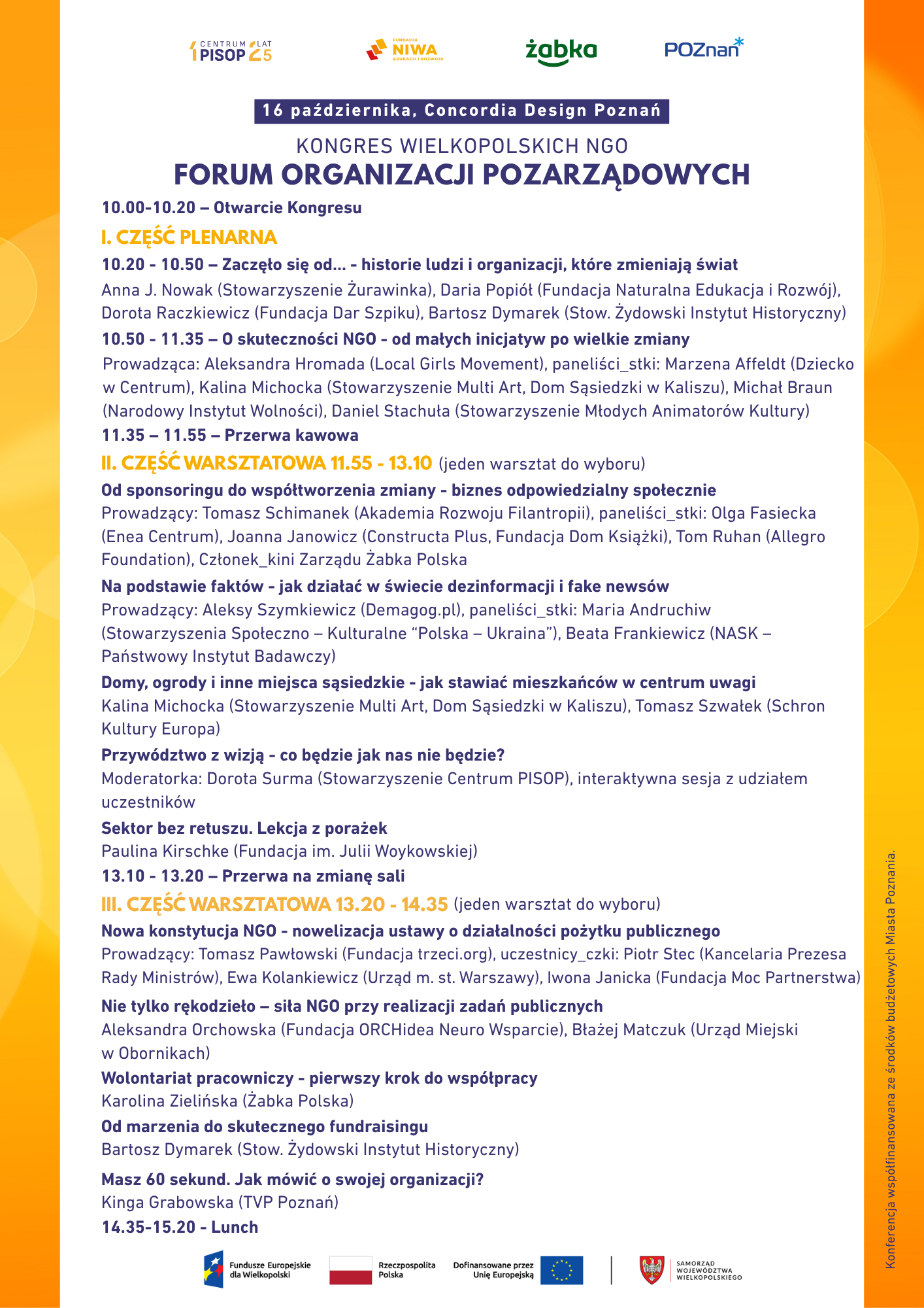 To będą dwa dni pełne energii, pomysłów i rozmów, które zostają na długo. Jeśli działasz w NGO, wspierasz sektor albo dopiero zaczynasz swoją przygodę z organizacjami pozarządowymi – nie może Cię zabraknąć!